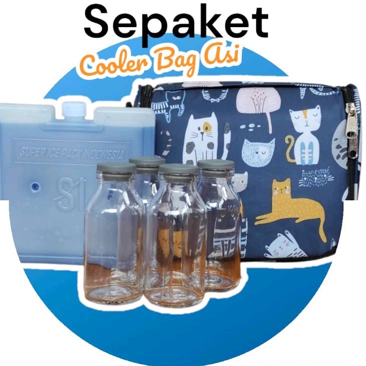 Cooler Bag Asi SEPAKET Ice Pack Gel + 4 Botol Asi Kaca