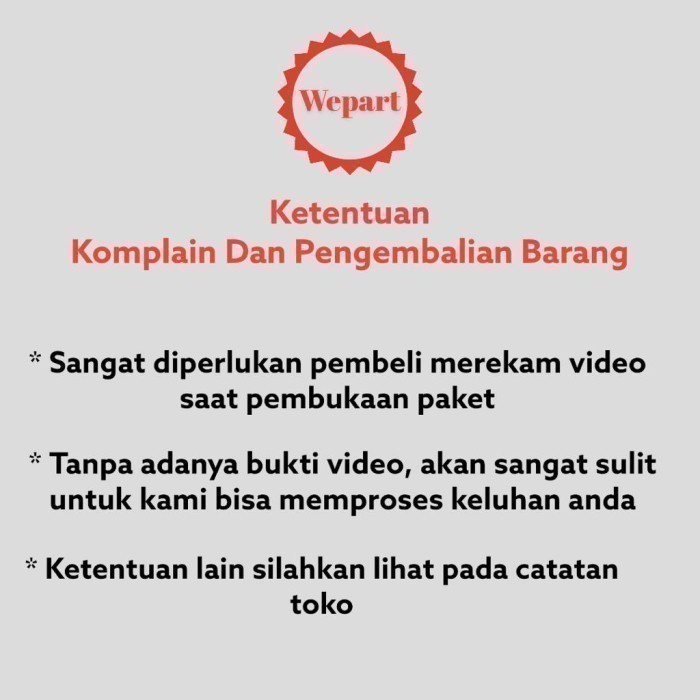 Mohon Dicocokan dan Dipastikan Dahulu Dengan Teliti Sebelum Melakukan Proses Pemesanan dan Pembayaran Pastikan barang yang anda beli sesuai dengan tipe yang ada dan memiliki bentuk serta spesifikasi yang sama