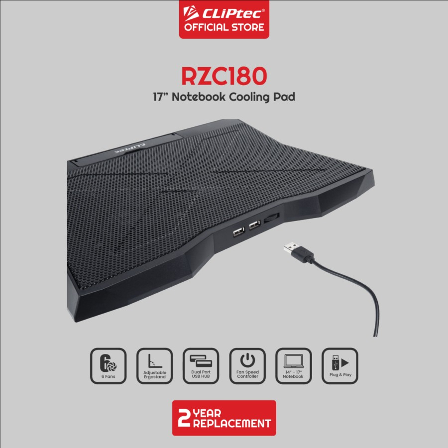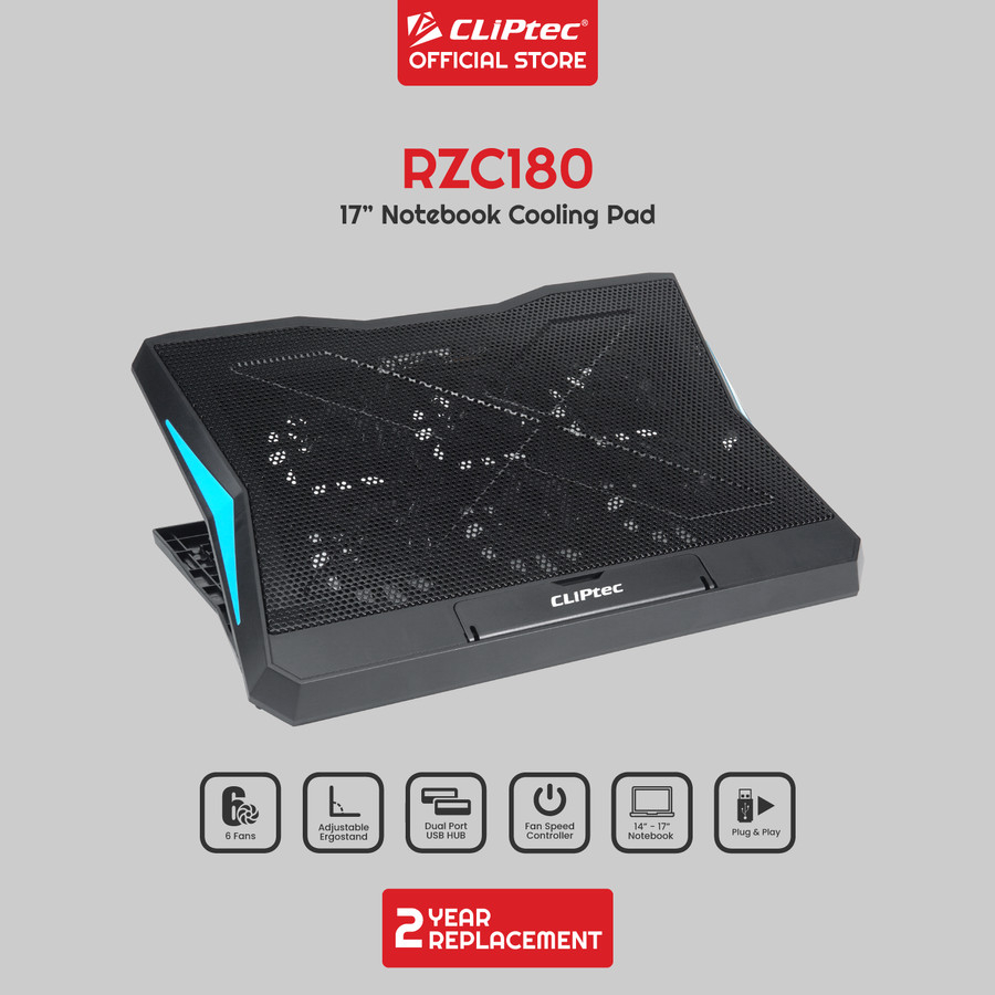 Cooling Pad 6 Fan CLIPtec RZC180 Cooling Pad dapat menjaga laptop anda dari overheat. Cooling pad laptop ini dilengkapi dengan 6 buah kipas yang akan menghasilkan angin yang besar sehingga laptop anda akan tetap dingin. Cooling pad laptop ini juga memiliki 2 buah port USB yang dapat digunakan untuk mencolok berbagai perangkat USB seperti mouse, keyboard, flashdisk, dan lainnya.