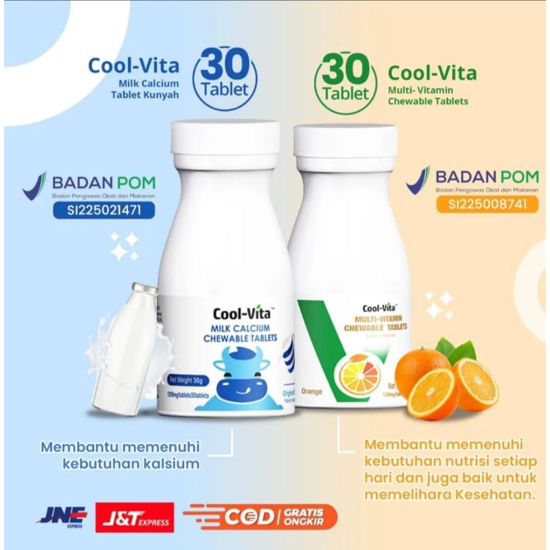 CoolVita MultiVitamin Chewable (Kunyah) Suplemen Makanan Rasa Orange dan milk isi 30 Tablets