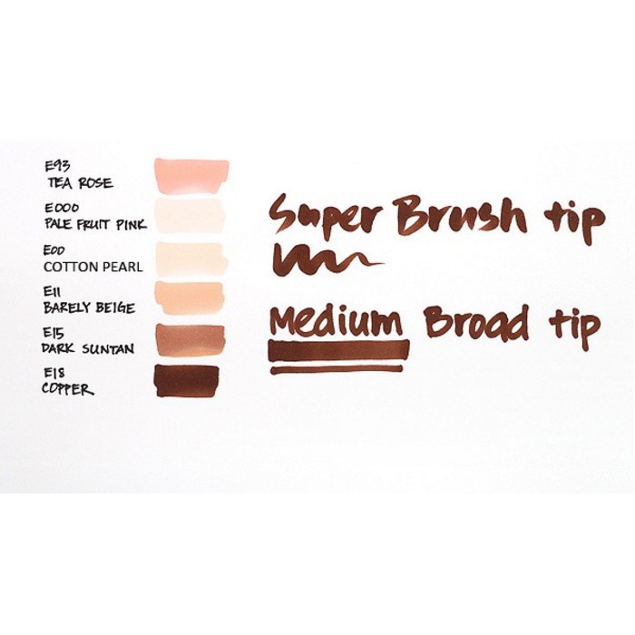 - 180 colors (including #0 Colorless Blender) - Alcohol based ink - Super Brush nib and Medium Broad nib - Round barrel - Child-safe cap - The average number of B4 size (257mm x 364mm) sheet in cases of painting whole area evenly with broad nib: 2.7 sheets (or 4 sheets of A4 size (210 x 297 mm) - Nib options are available - Refillable