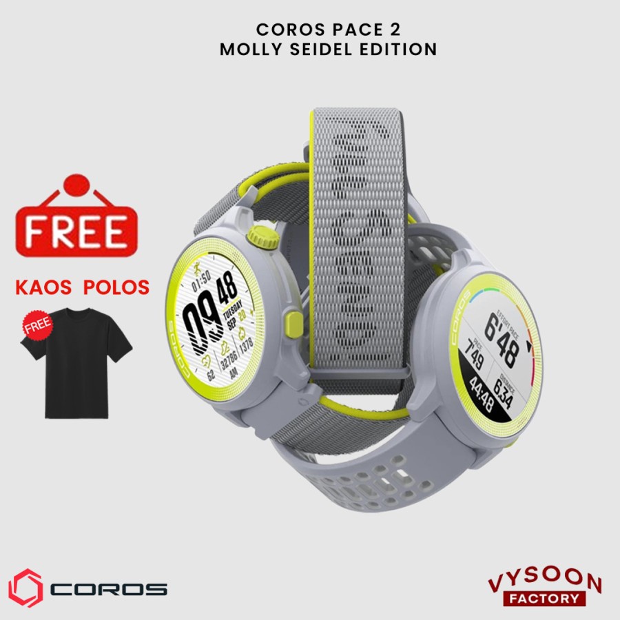 In The Box : - Coros Pace 2 - Molly Seidel Edition - Nylon Watch Band - Silicon Watch Band - Headband - Charging Cable