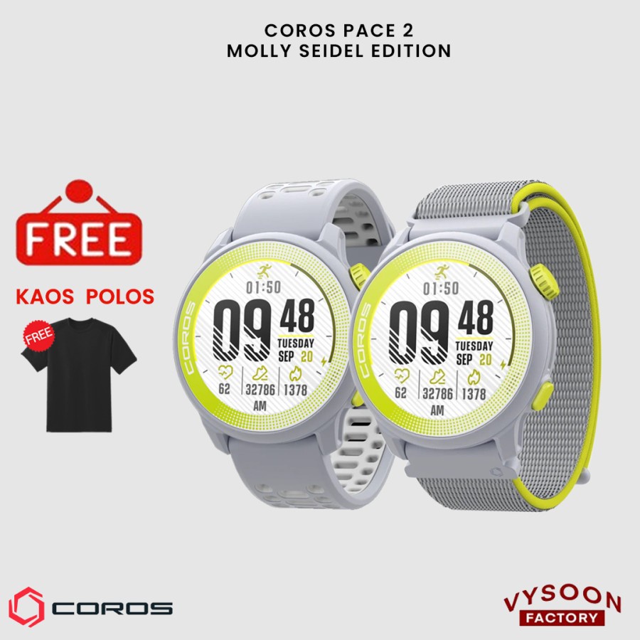 In The Box : - Coros Pace 2 - Molly Seidel Edition - Nylon Watch Band - Silicon Watch Band - Headband - Charging Cable