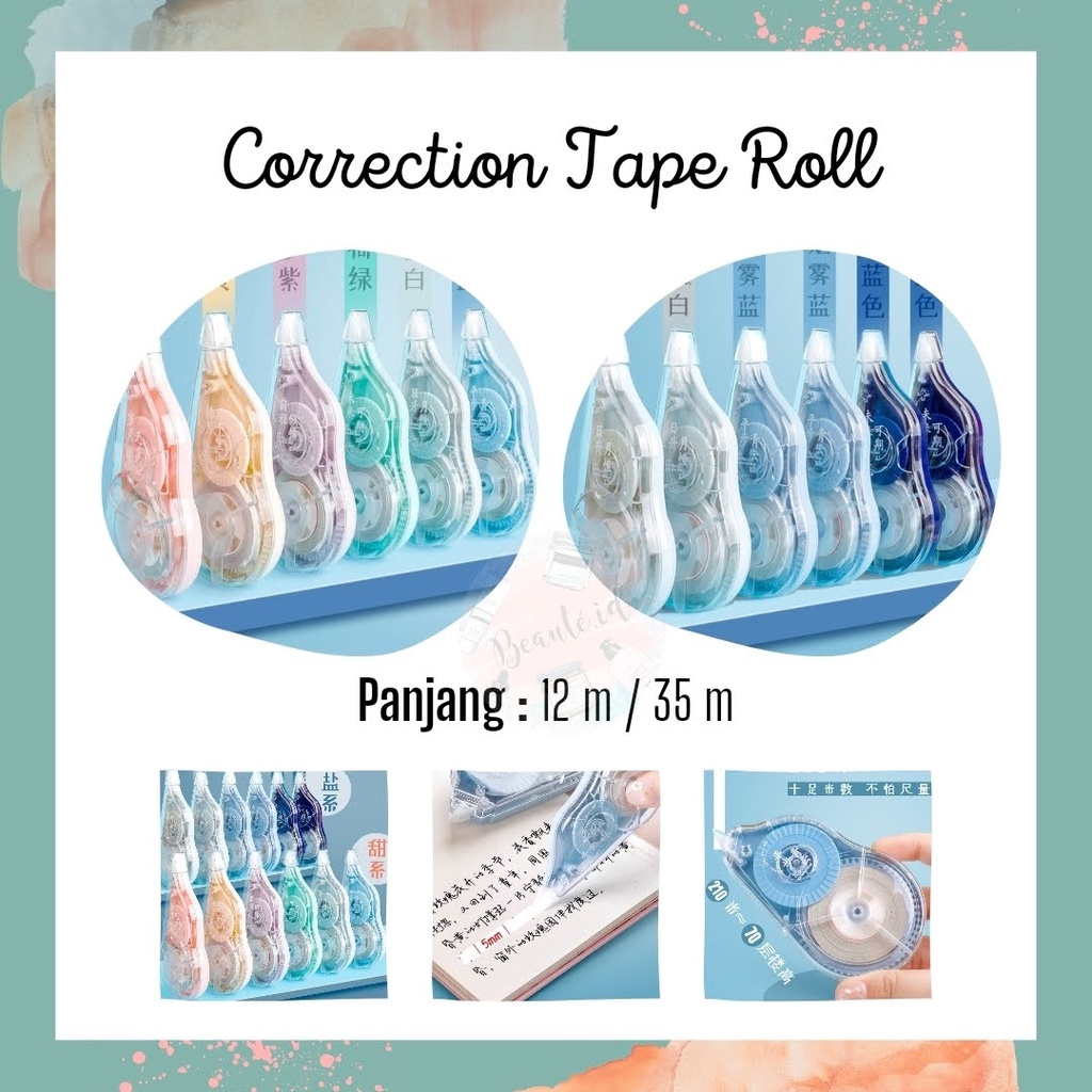 Detail Correction Tape Roll Panjang 12 / 35 m Tipe Ex Kertas Buku Catatan Tulis Model Gulungan Besar Jumbo Berkualitas Lucu Aesthetic Roller Penghapus Tinta Pulpen ATK Untuk Sekolah Anak Mahasiswa Pelajar dan Kantor