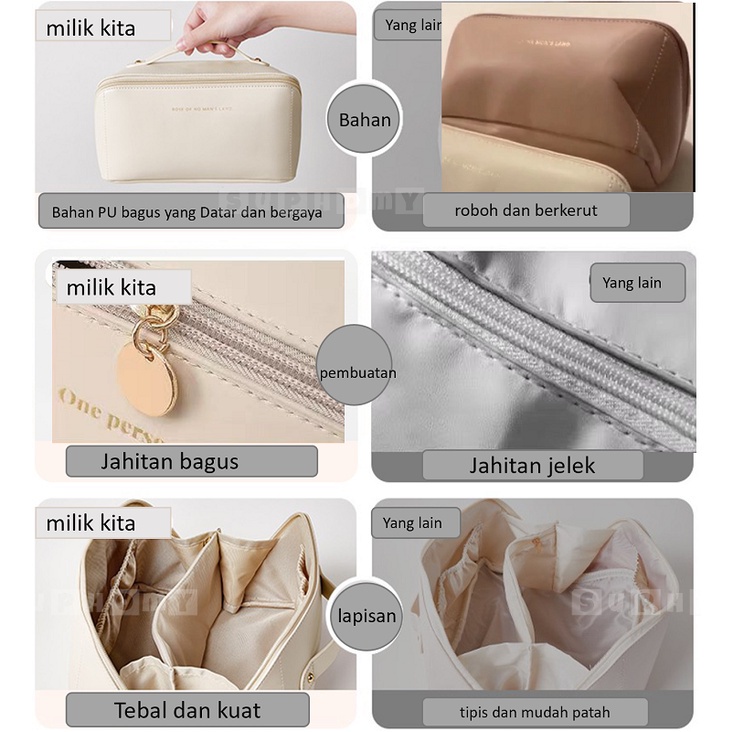 ⭐highlights: ✅ Bahan PU berkualitas tinggi yang mudah dibersihkan, dan permukaan tahan air khusus mencegah produk di dalam dari menjadi basah. ✅ Desain Kapasitas Besar: Desain Khusus dengan beberapa ruang penyimpanan yang dapat menyimpan semua barang perawatan kulit dan makeup Anda. ✅ jahitan yang bagus dan ritsleting halus