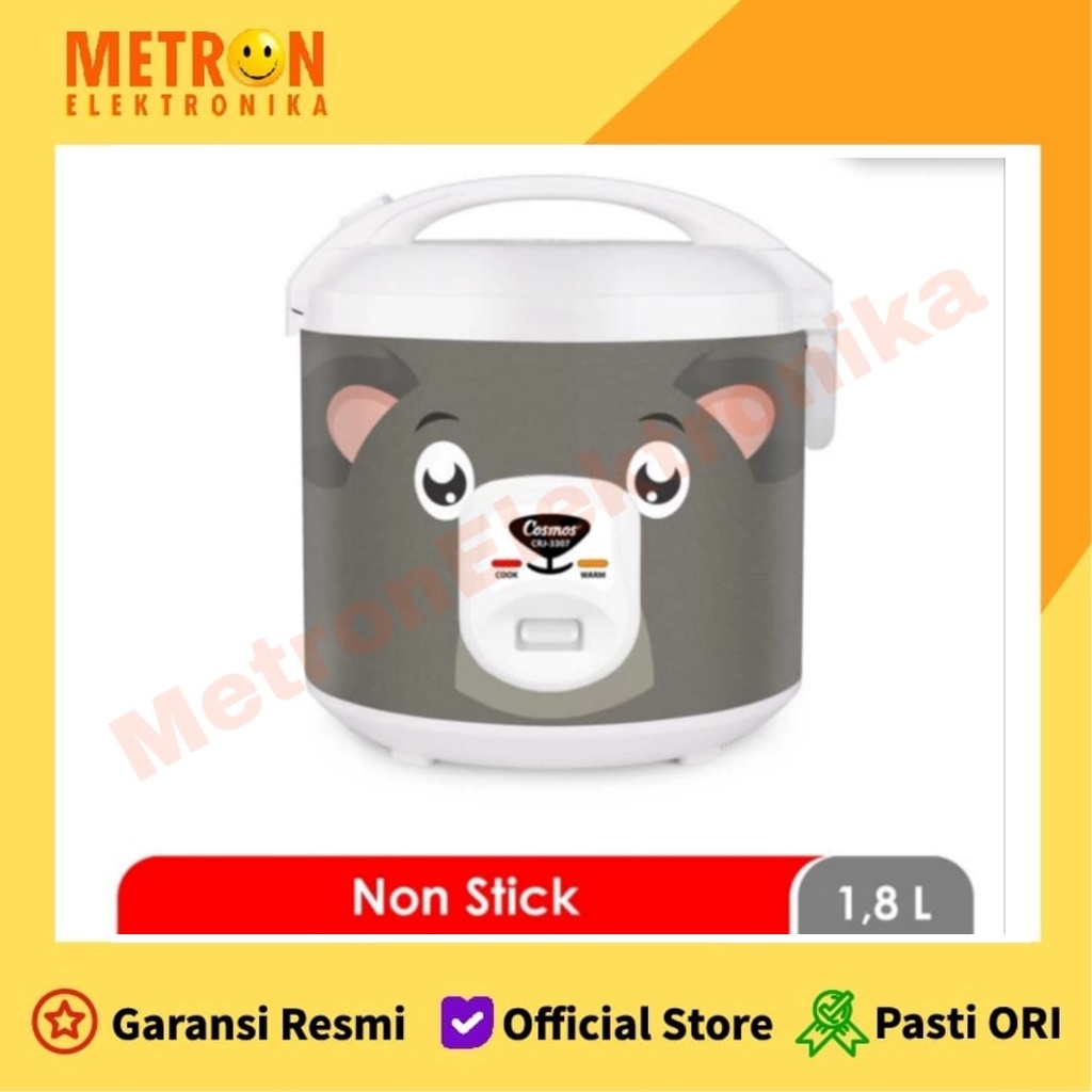 Rice Cooker Cosmos dengan Inner Pan Non Stick Coating yang anti lengket berkapasitas 1.8 Liter. Dengan fungsi 3in1 dapat digunakan untuk memasak, menghangatkan serta mengukus.