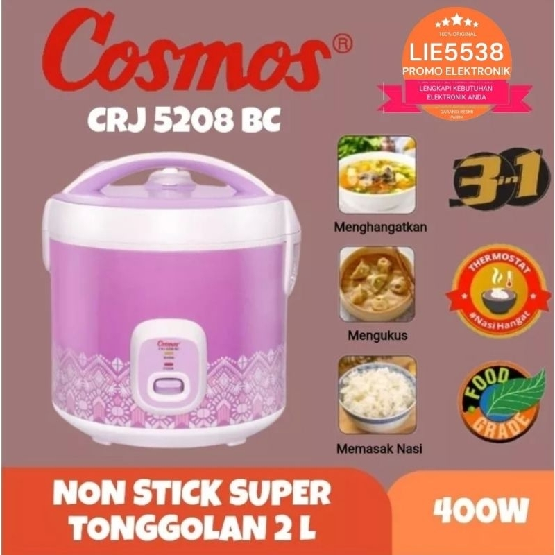 COSMOS CRJ-5208 / CRJ 5208 Rice Cooker Non Stick 2L GARANSI RESMICOSMOS CRJ-5208 / CRJ 5208 Rice Cooker Non Stick 2L GARANSI RESMI