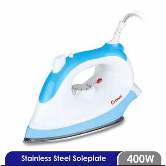 Setrika dengan tapak lebih luas berbahan Stainless Steel, lebih awet karena tidak mengelupas dan tidak menempel pada pakaian.