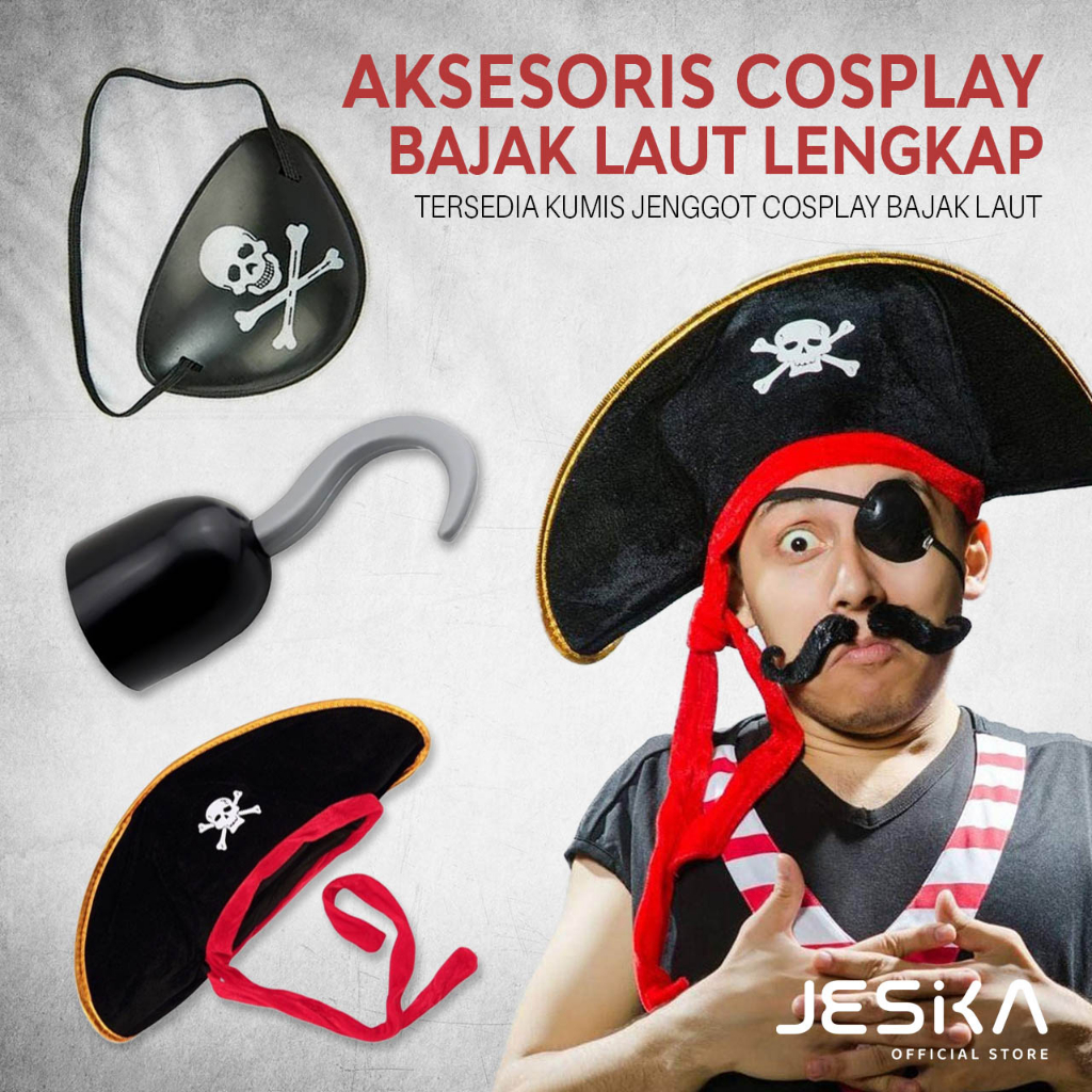 Detail Cosplay aksesoris accecories bajak laut pirates style outfit edition dewasa anak topi tutup mata penutup mata sebelah hook mainan anak-anak laki-laki dewasa kumis jenggot brewok tempel fake palsu pria