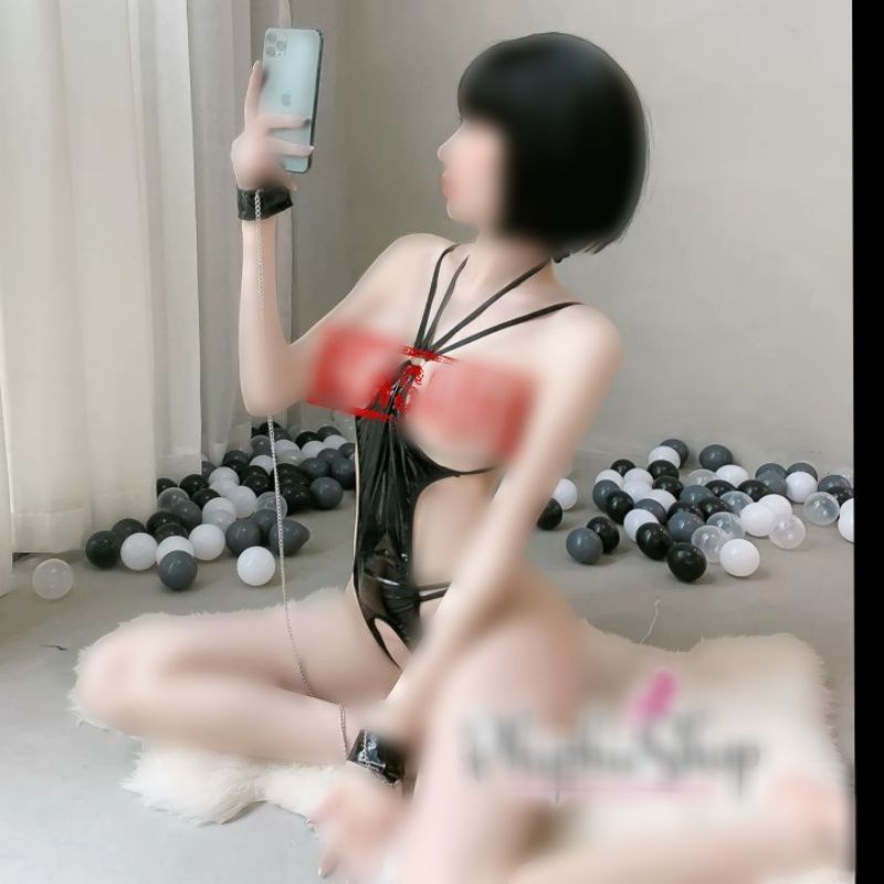 gender: woman item type : cosplay Bahan : synthetic leather colour : hitam size : All Size (bahan melar) Lingkar Underbust max 100cm Panjang baju 70cm LPinggul 58-95cm Panjang rantai 52cm Isi : teddies + rantai + ikat tangan