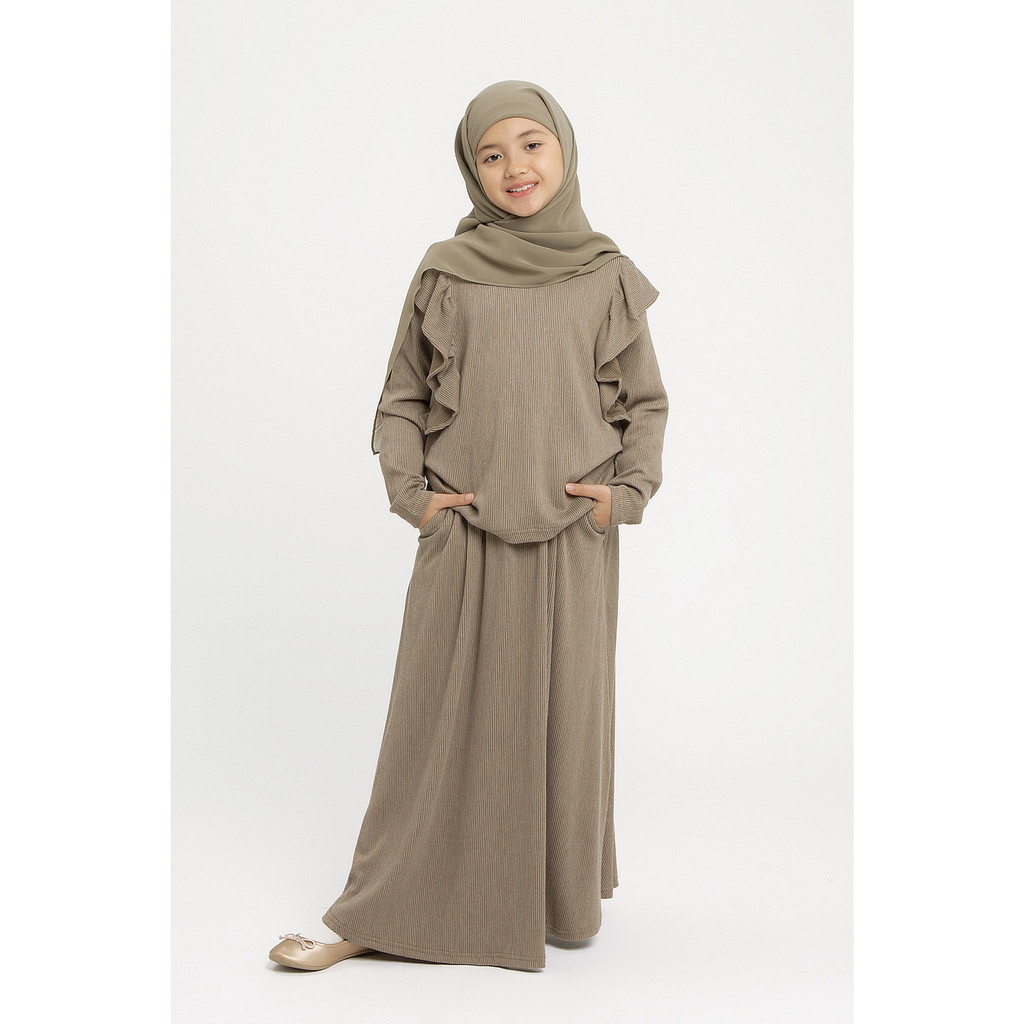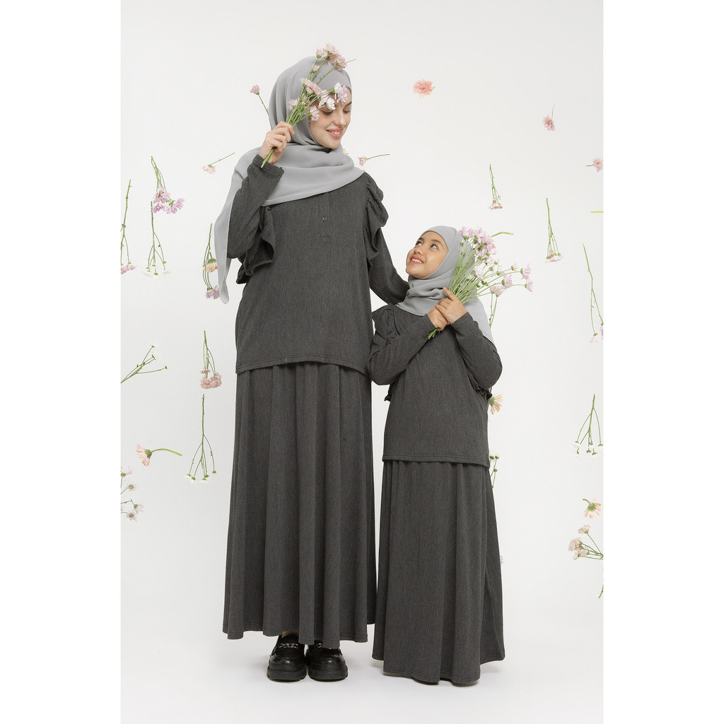Detail : One set rok couple mom dan kids dengan 3 warna pilihan Menggunakan bahan Premium Knit yang nyaman digunakan, ringan, menyerap keringat, ironless, tekstur bahan halus, strechy, dan tidak menerawang One set dengan aksen ruffle pada bagian kerung lengan Lingkar leher bulat dengan model lengan panjang Bagian pinggang full karet dengan tambahan kantong dikanan kiri rok pairing on Model : Adiba Set Charcoal Mom Kids X Haura Instant Hijab Light Grey Adiba Set Cappuccinno Kids X Haura Instant hijab Dusty Olive