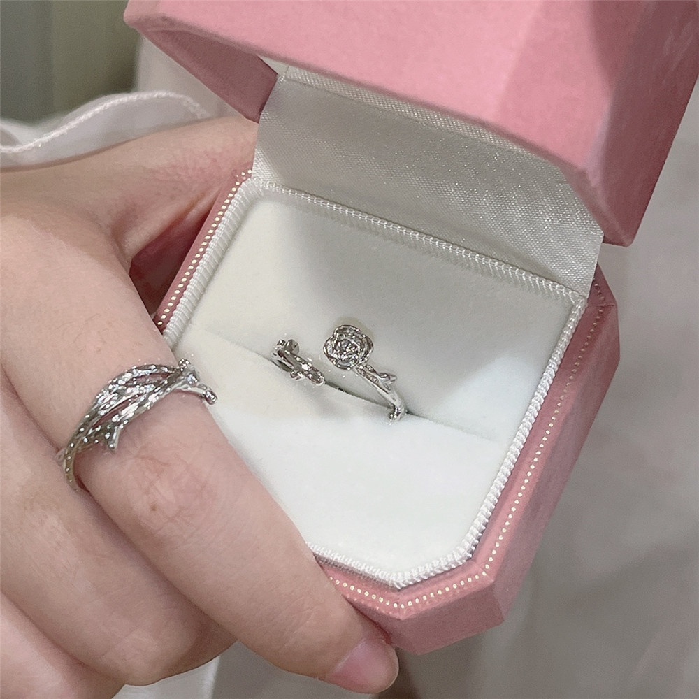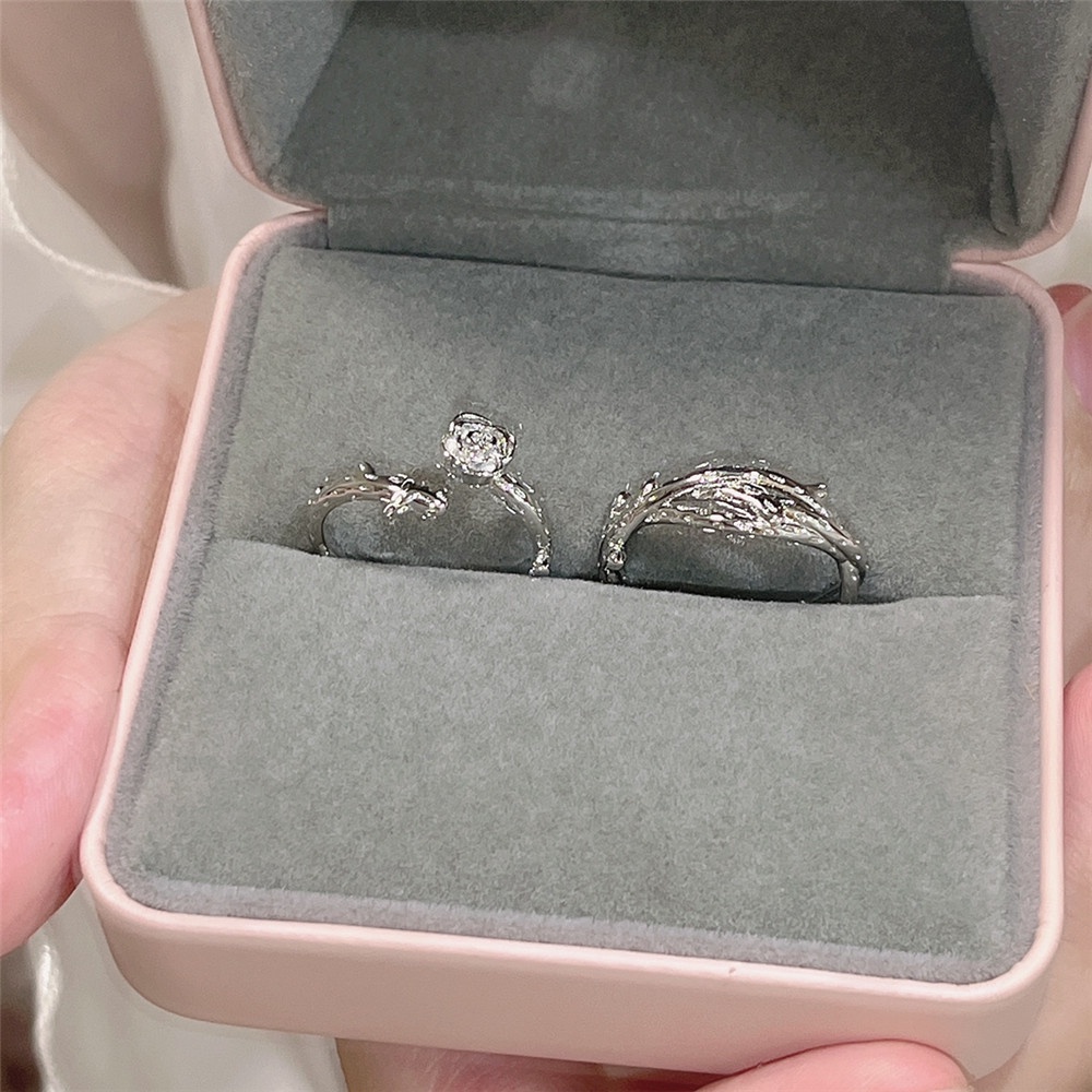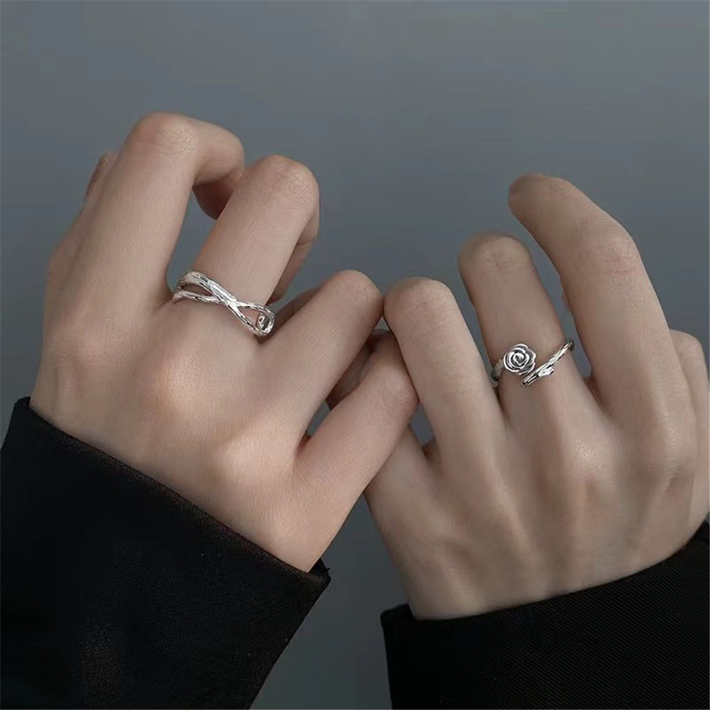 Detail Couple Adjustable Bunga Mawar Pecinta Pembukaan Adjustable Ring Aksesoris Cincin Rose