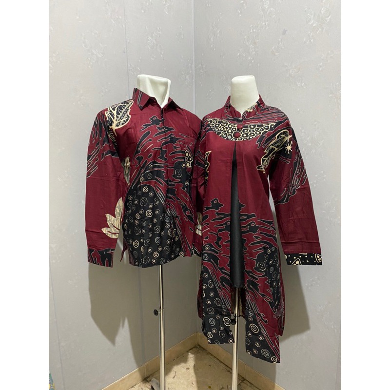 Detail Couple Atasan Tunik Batik Wanita Terbaru Bahan Kain Katun - Motif Abstrak Bolero Marun