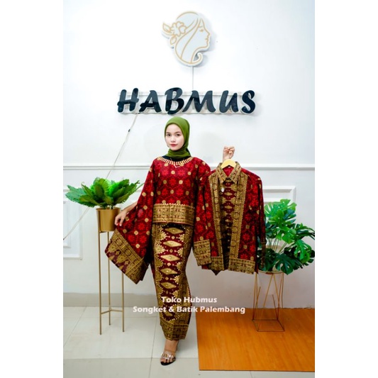 couple setelan rok batik songket palembang maron goldcouple setelan rok batik songket palembang maron gold