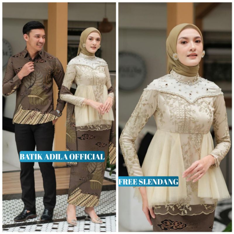 Pakaian Wanita > Pakaian Tradisional > Set Pakaian Tradisional > Couple Kebaya Modern Baju Wisuda Tunangan Lamaran Terbaru Baju Batik Brokat Couple Ameera