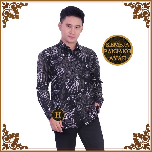 Detail Couple Kemeja / Hem Batik Lengan Panjang Pendek Ayah Anak Motif Manggar Abu 1-14 tahun butikdian