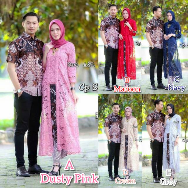 Detail COUPLE LONG KUTUBARU LUNNA SERIES RNB BROKAT HEM BATIK LENGAN PENDEK MODERN MURAH