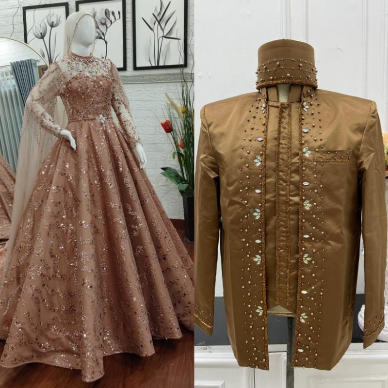 Detail COUPLE TERLARIS GAUN BERBY /BAJU PENGANTIN TERBARU/GAUN MODREN /GAUN PENGANTIN BEREKOR/WEDDING DRESS