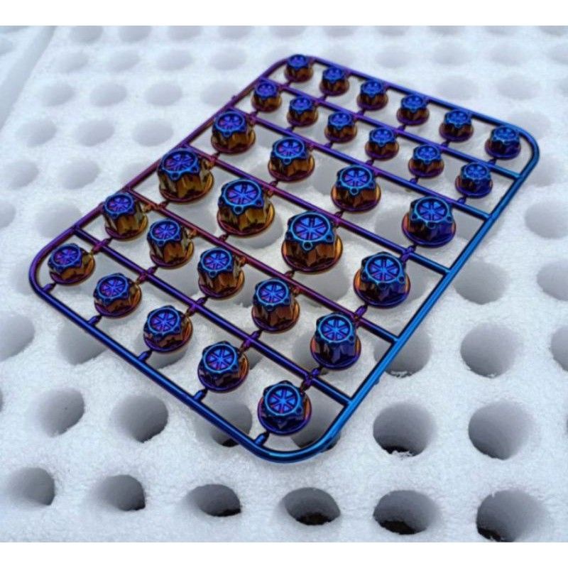 cover baut mesin universal warna bunglon ungu kebiruan berkilau isi 30 biji .. universal semua motor masuk dan semua bagian baut dimotor silahkanbdiorder