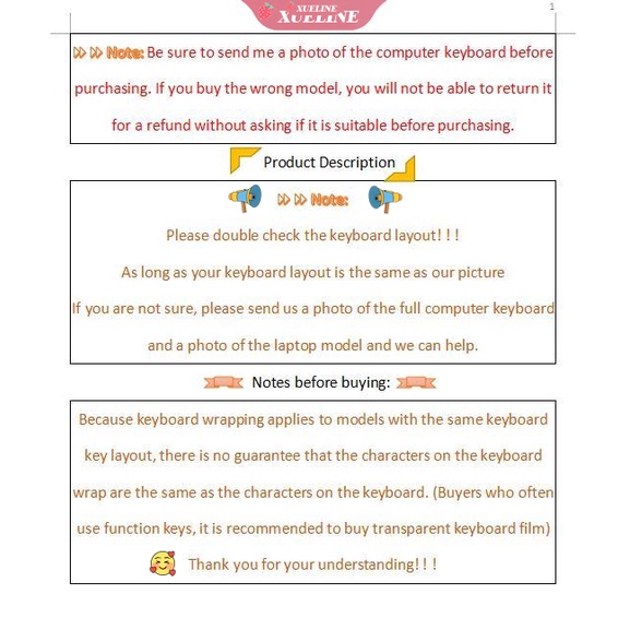⏩⏩Catatan: Pastikan untuk mengirimi saya foto keyboard komputer sebelum membeli. Jika Anda membeli model yang salah, Anda tidak akan dapat mengembalikannya untuk pengembalian dana tanpa bertanya apakah cocok sebelum membeli. 🌸🌸🌸Deskripsi Produk Produk Deskripsi Produk