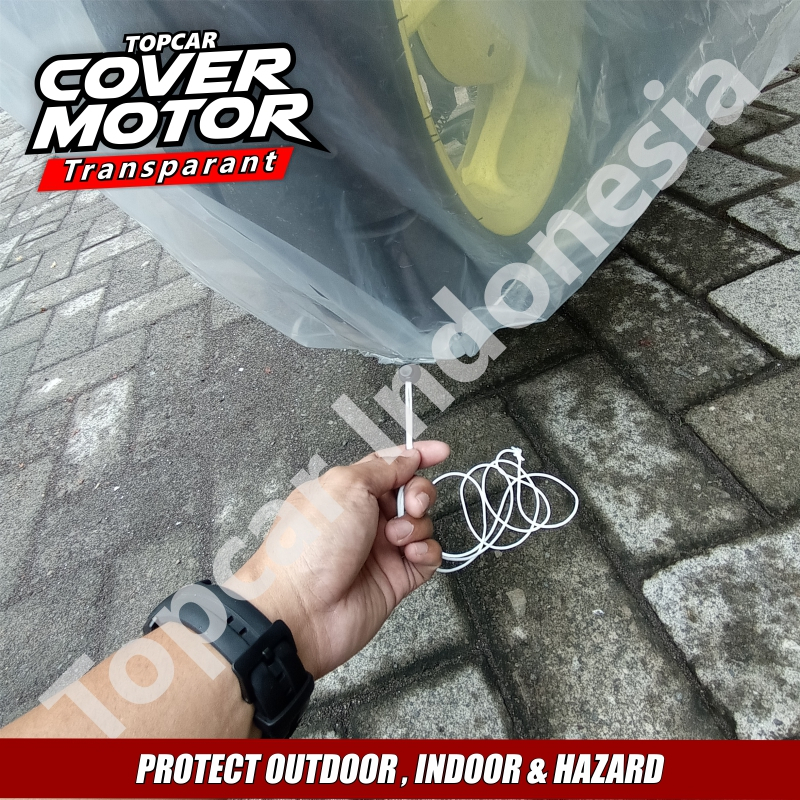 Cover motor indoor TOPCAR berbahan plastik PE bahan lentur lembut tidak merusak cat/body motor. Tidak hanya melindungi body / cat, cover motor indoor TOPCAR juga bisa melindungi jok motor tidak langsung terkena air huja / debu / kotoran hewan sehingga bahan dan kualitas jok motor kita tetap bagus dan empuk.