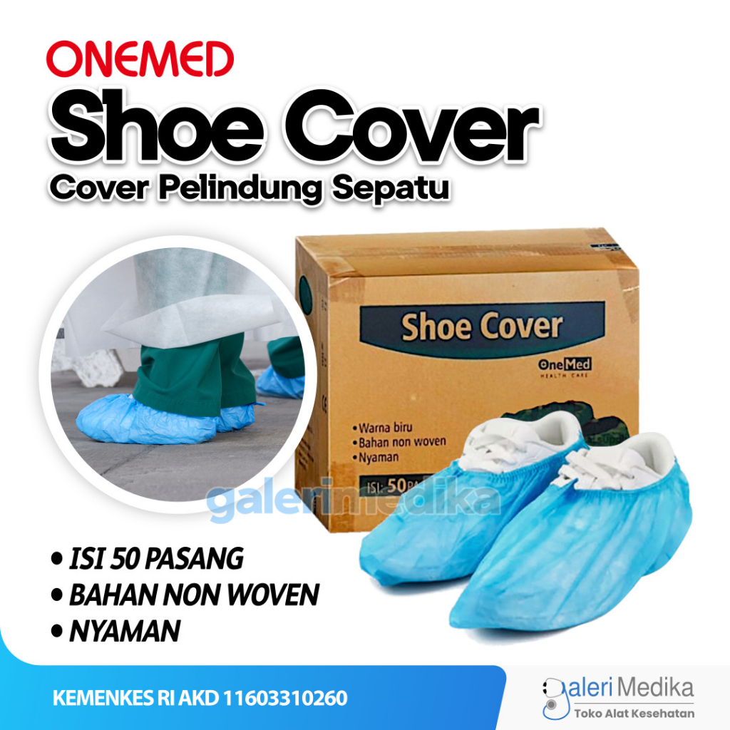 Onemed Shoe Cover penutup pelindung alas kaki atau pelindung sepatu terbuat dari bahan 100% non woven hanya untuk sekali pakai, bahan yang nyaman bisa digunakan keperluan medis atau lainnya. Dapat melindungi Kaki / alas kaki dari polutan di udara.