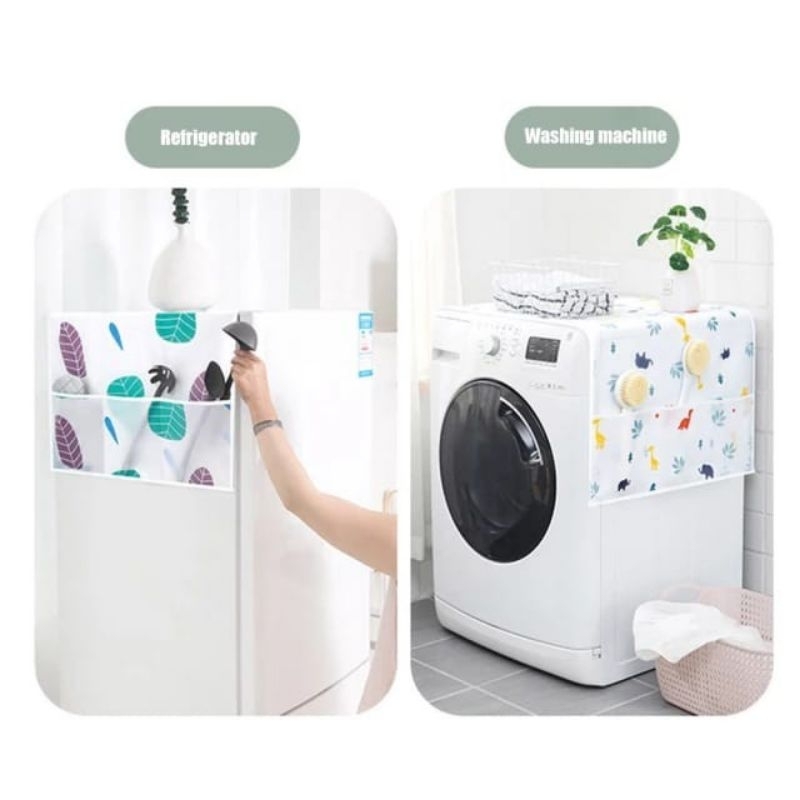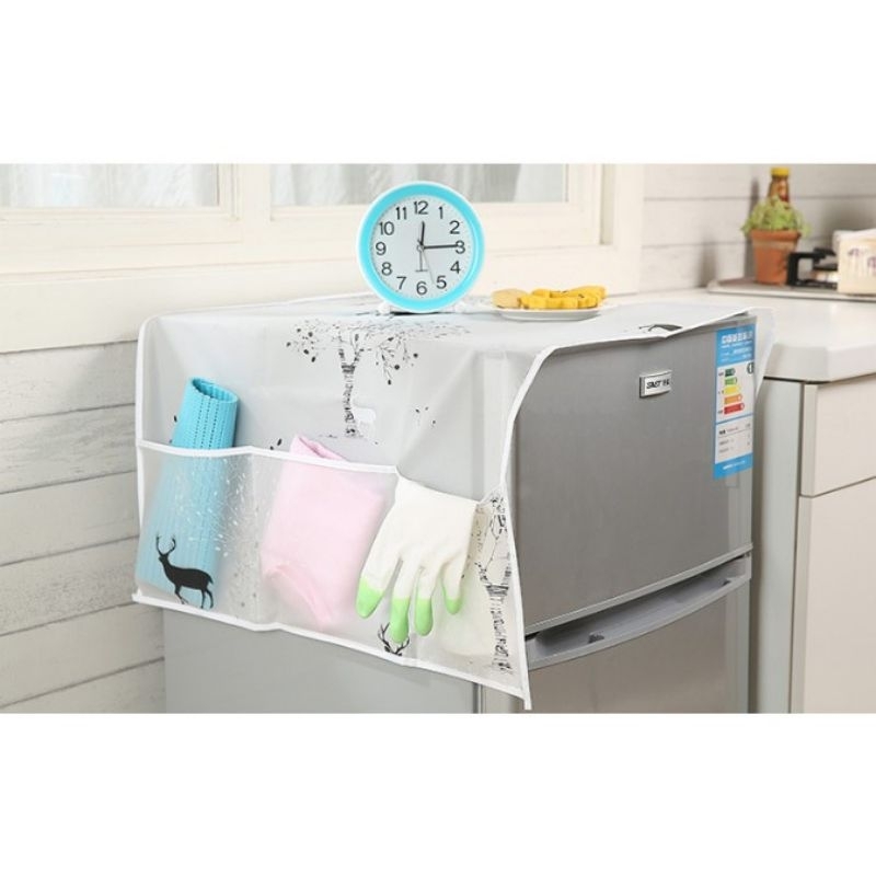 Penutup bagian atas kulkas berfungsi sebagai pelindung dari debu / kotoran, agar kulkas bagian atas tidak baret / tergores. Dan juga berfungsi sebagai dekorasi yang dilengkapi dengan kantong (3 kantong masing2 sisi) untuk menaruh barang2 keperluan dapur. Mudah dicuci jika terkena noda karena bahan taplak anti air .
