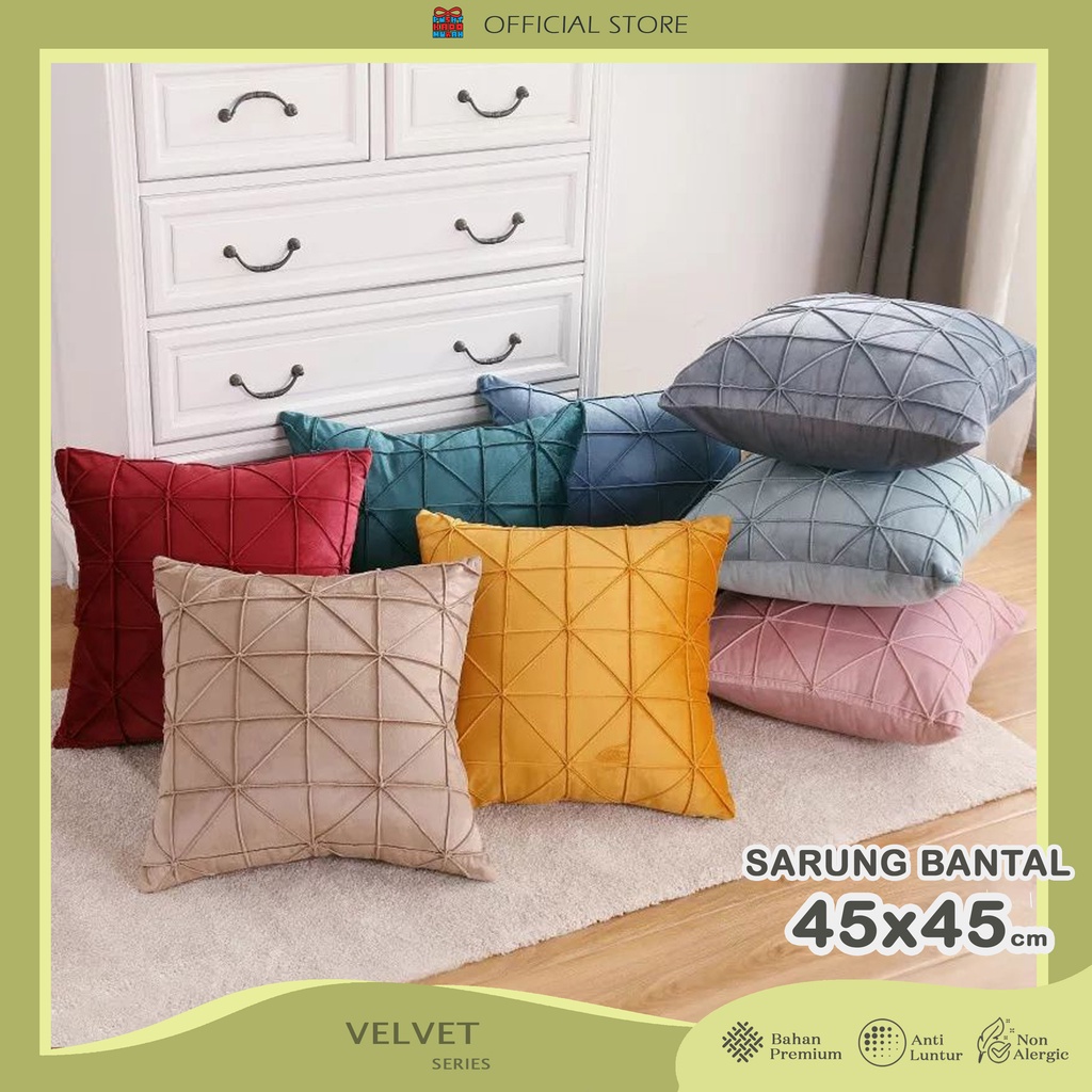 Ukuran : 45x45 cm Bahan: Premium Velvet Timbul, Halus dan Lembut dengan Resliting di bagian bawah. Untuk bantal isian dijual terpisah. Memperindah ruangan dengan kesan elegan dan mewah.
