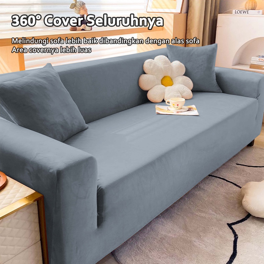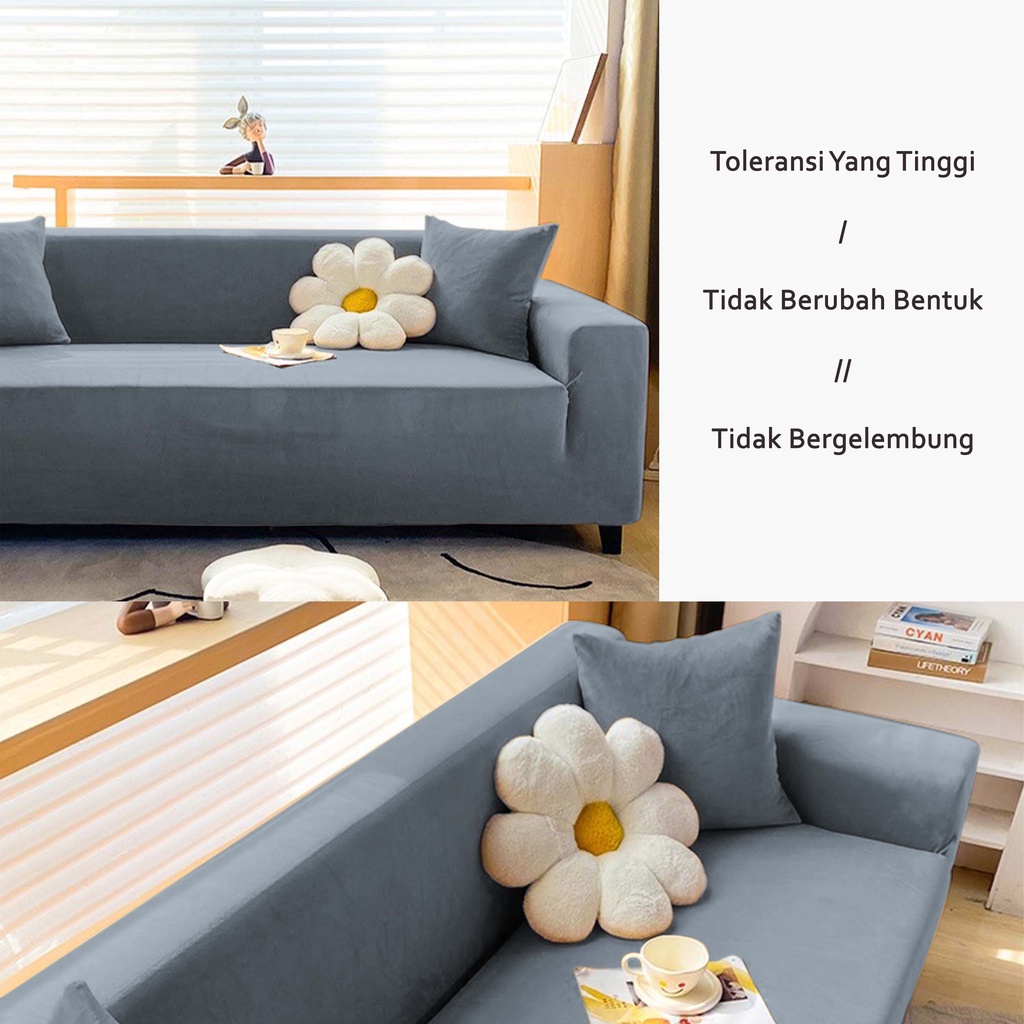 Detail Cover sofa Sarung Sofa Beludru Anti Slip Penutup Sofa Tebal Warna Solid Seater 1/2/3/4 Elastic Elastis
