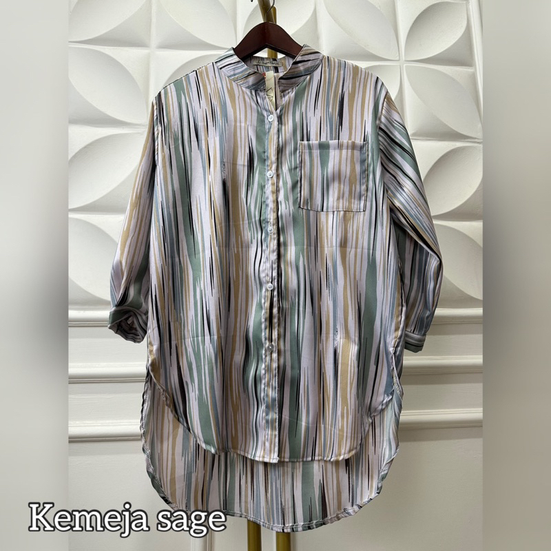 Pakaian Wanita > Set > Set Wanita > Coza Setelan Wanita Amora Set Kemeja Motif Salur Garis Lurik Abstrak Bahan Syakila Premium Size Standar Dan Jumbo XXXl 100kg Lengan panjang Setrip