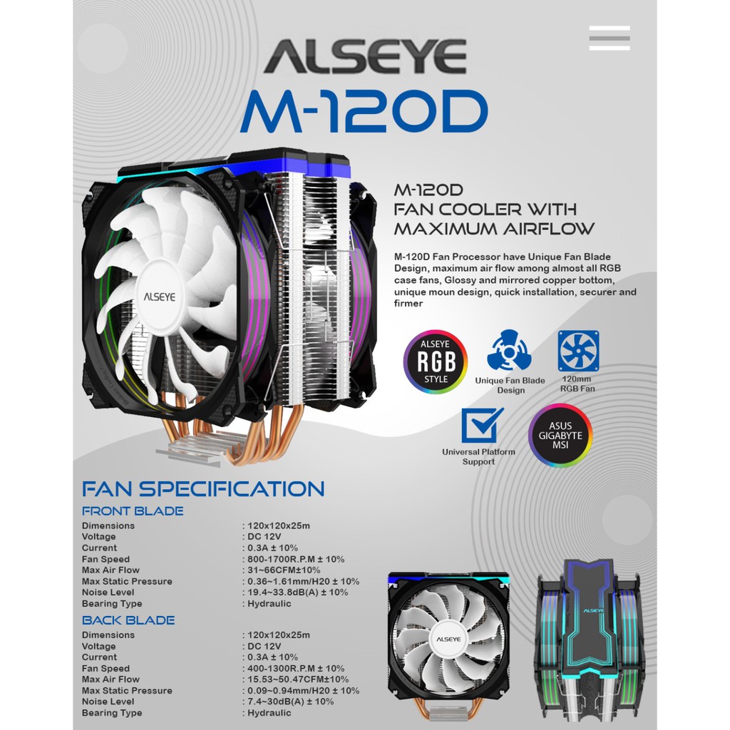 Detail Cpu Cooler Gaming Alseye MAX Series 4 Heat Pipe RGB M120D - Fan Processor heatsink M-120D 4 pipa