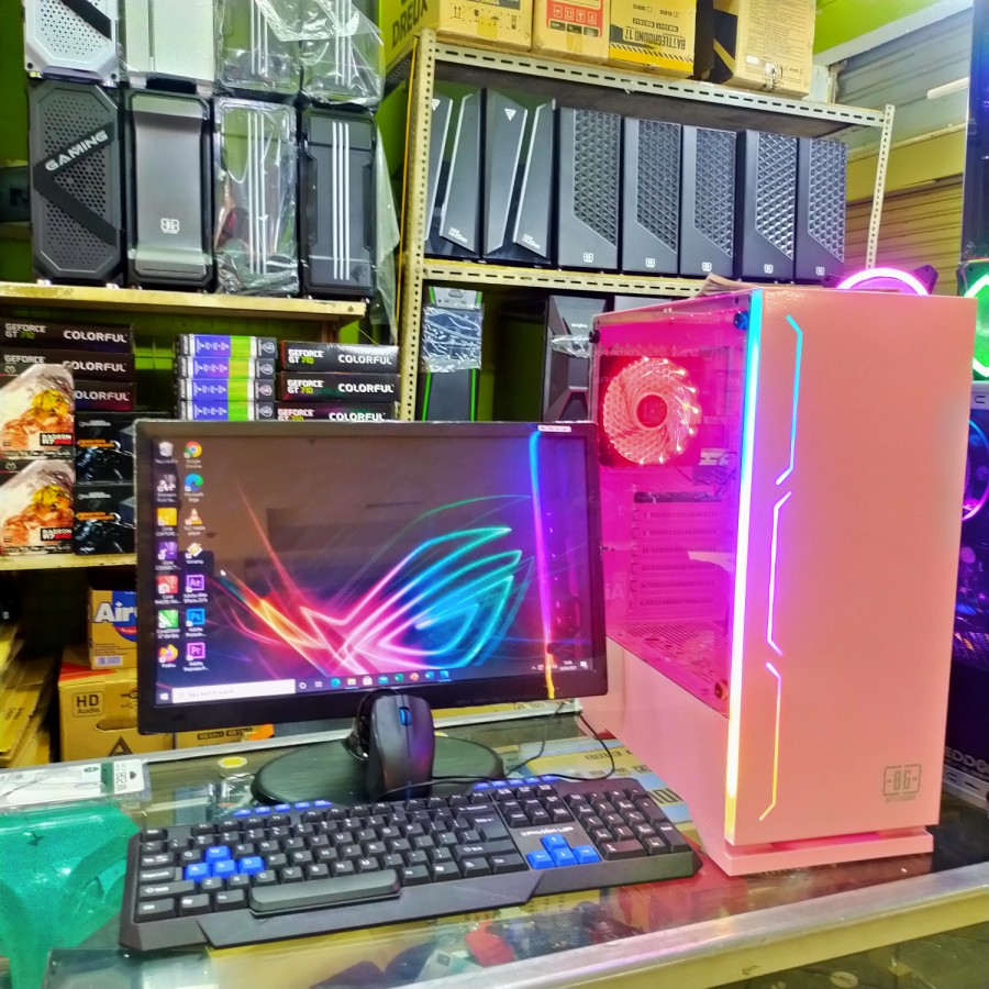 Spesifikasi *Procesor Intel E8200/E8400 3.0Ghz (new) Seri Tertinggi *Motherboard G41 DDR3 *RAM 4GB DDR3 (new) *VGA Nvidia/Radeon vram 512m/1gb shared 2gb ddr3 256bit *Ssd 128gb (new) Proses cepat alias ngebut, anti lemot *PSU Std 200an/400 watt (tidak akan boros listrik) *Monitor 16inch/19inch *Mouse Keyboard RGB Gaming (new) *Case Gaming RGB (new) / Standart