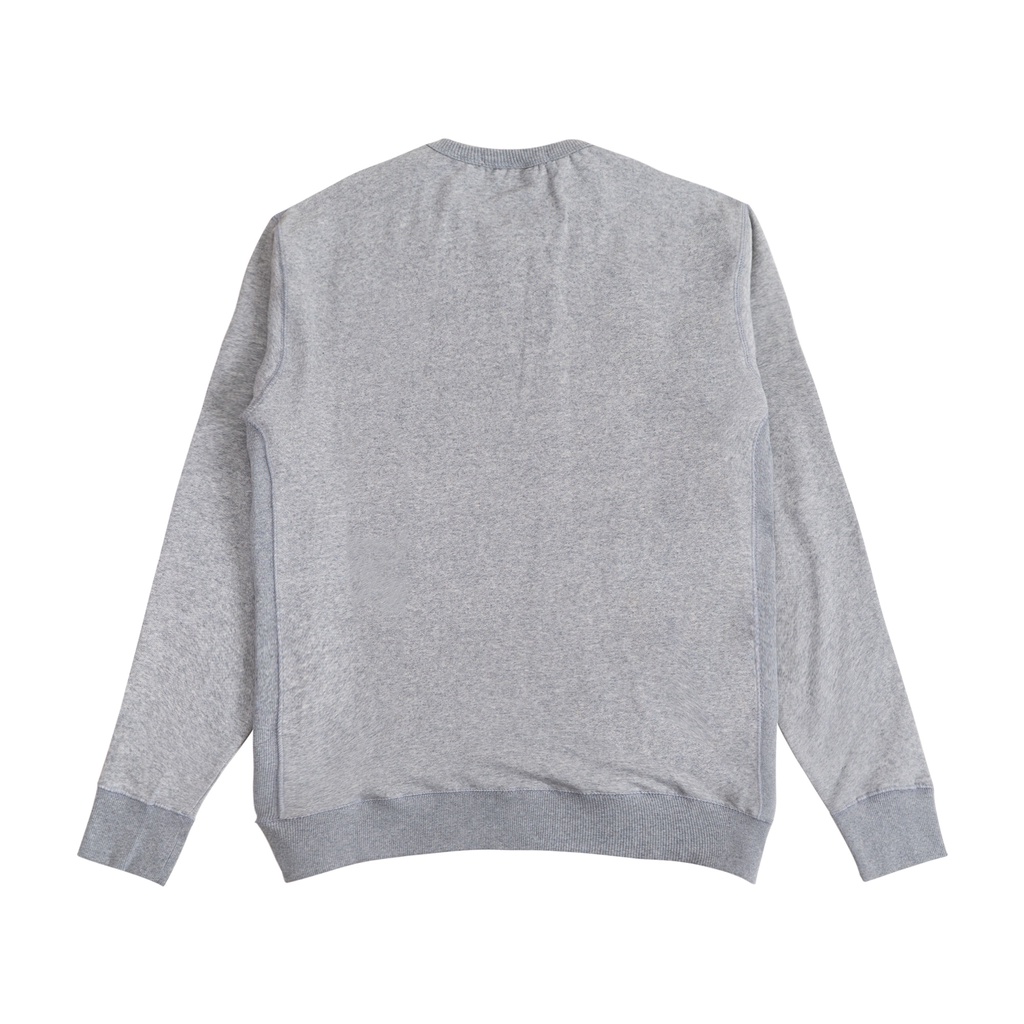 Heather grey cotton fleece 280 gsm crewneck, multi color plastisol ink screen print.