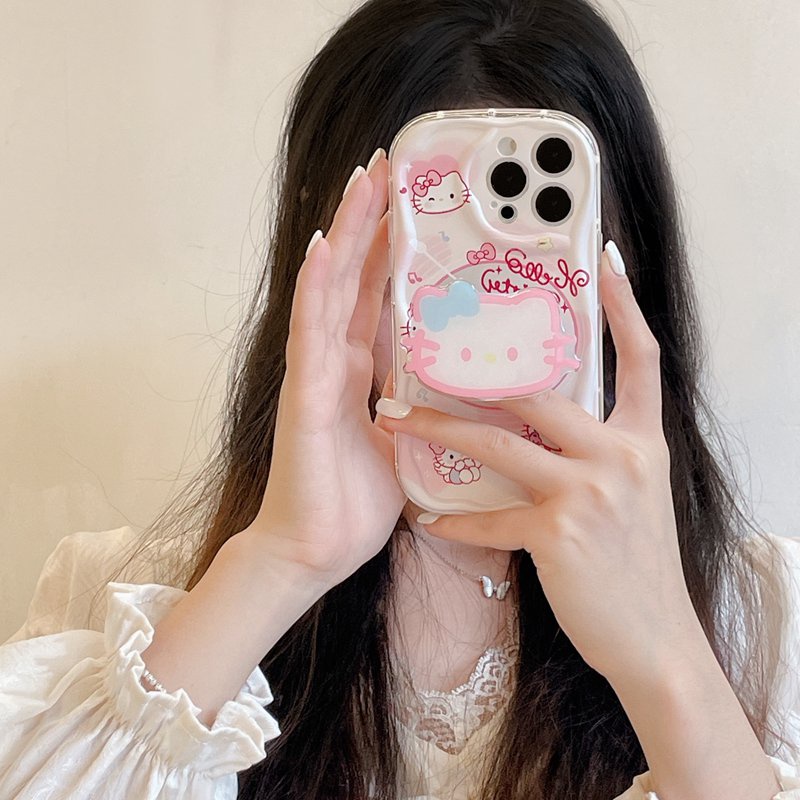 🔔【Ready Stock】 Cream Casing CD Hello Kitty Popsocket Soft Case HP iP iPhone 6 6S 7 8 14 + Plus SE 2020 2022 X XS XR 11 12 13 Pro Max Girl Woman