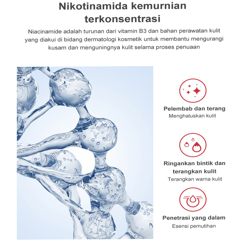 🌸Ingredient efficacy: 【Niacinamide】: Helps reduce the dullness and yellowing of the skin during the aging process 【Sodium Hyaluronate】: Penetrates hydration, maintains muscle base, and makes skin fair and translucent 【Tocopherol (Vitamin E)】: Moisturizes and brightens the skin, deeply repairs various blemishes and spots on the skin 【3-O-Ethyl Ascorbic Acid】: Rejuvenates and smoothens the skin, brightens the complexion from the inside out