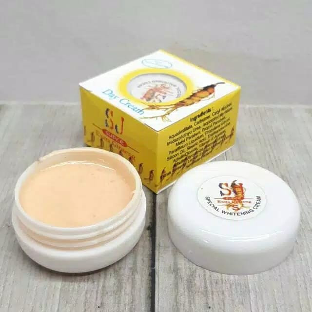 Cream SJ Super Extra Ginseng Cocok untuk semua jenis kulit wajah.Cream ini berfungsi untuk menghaluskan wajah secara merata, Menghilangkan flek hitam pada wajah dan memutihkan wajah dalam waktu yang relatif singkat alami. SJ Super Extra ginseng terbuat dari bahan-bahan alami dengan extra ginseng. Cara pemakaian Tersedia pada kemasannya.