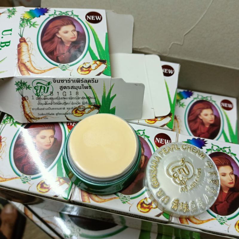 UB ginsara herbal pearl cream 5gr Dengan formula yang mengandung Vit E, Ginseng extract serta Aloe Vera Extract. Dapat digunakan sebagai foundation. Kulit wajah lebih halus .dan bercahaya ...pakai secara teratur,rasakan khasiatnya. Cara pakai : Oleskan UB Ginsara Herbal Pearl Cr ke wajah yang telah dibersihkan. Gunakan pagi dan malam hari sebelum tidur.