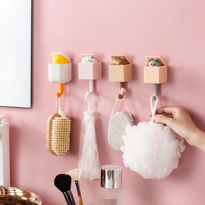 Description. 1. non-marking and non-perforated creative cute retractable hooks with strong adhesive hooks. 2. When you hang the object on the hook and pull down, the head of the cute animal will pop out of the box, and the box will close automatically when you are not using it. 3. It has a large load capacity and can hang objects of at least 2.5 kg. 4. Strong self-adhesive, no trace left after tearing off. Sturdy and stylish cartoon animal coat hooks. 5. Hook is made of high quality ABS and non-marking adhesive material, sturdy and durable, stylish and beautiful. 6. Firm adsorption, moisture and humidity resistance, water does not fall off. 7. Doorway entrance to hang keys, fashionable and versatile, fresh. 8. Behind the door to hang clothes and bags, convenient to go out and come back. 9. Bathroom hanging toiletries, space neat and tidy orderly.