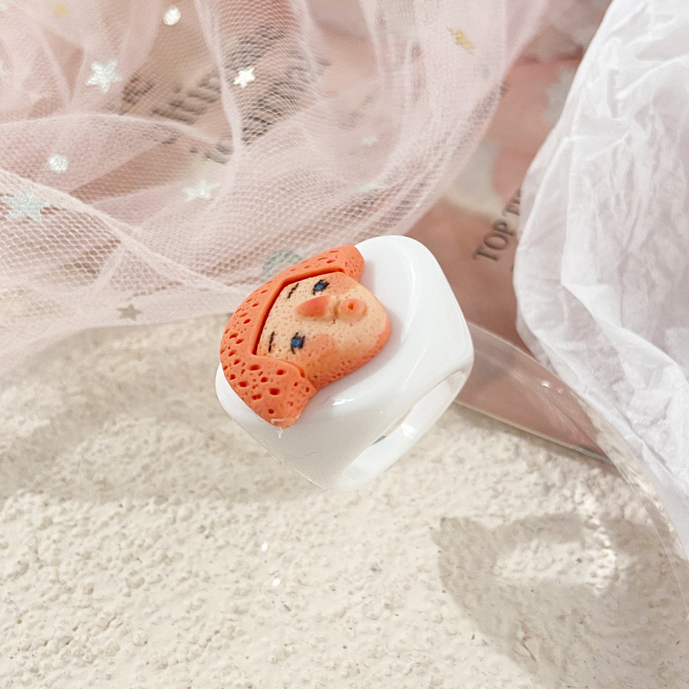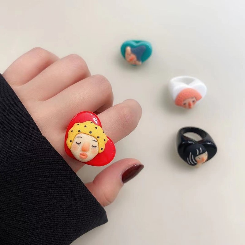 Detail Creative Geometric Cartoon Face Ring Bracelet Cute Funny Graffiti Resin Ring for Women