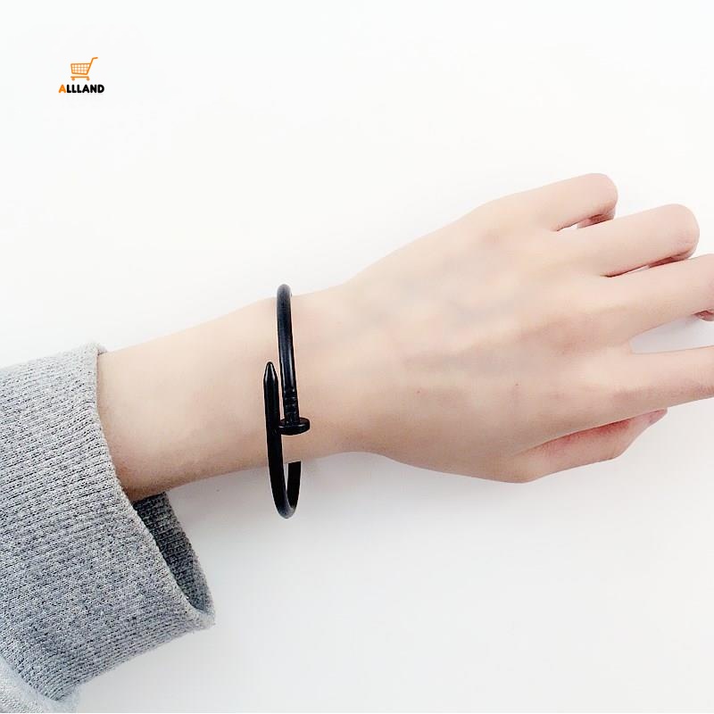 Specification Material: metal Size: Diameter: 5.9cm-6.25cm Color: gold, silver, black, rose gold Style: Unisex Style: Japanese and Korean simple Style: Nail Category: Bracelet Quantity: 1 Package includes: 1X bracelet