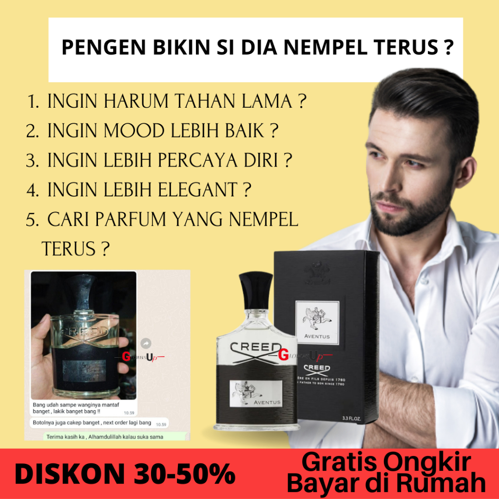 PARFUM CREED AVENTUS 120ML Merk : Creed Gender : Pria Ukuran : 120 ml Type : Eau de Toilette Ketahanan :3-4 JAM (Tergantung Suhu) Kualitas : Produk Lokal bpom na 18180602034