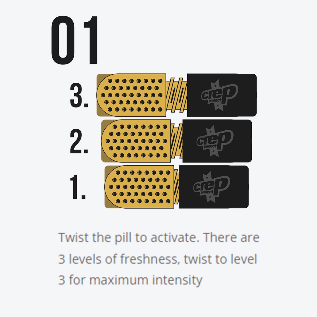 Crep Pill berfungsi membuat sepatu anda tetap segar dan tidak adanya bau tidak sedap.