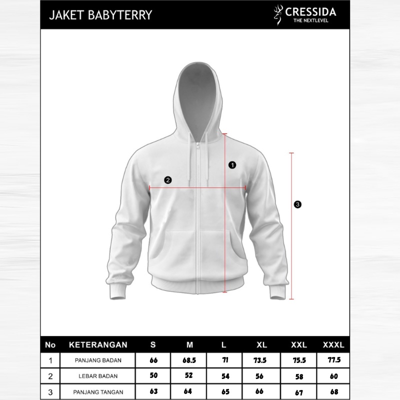 DETAIL UKURAN: Lingkar Dada x Panjang Badan x Lebar Bahu - S(100 cm x 66 cm x 41 cm) - M (104 cm x 68.5 cm x 43 cm) - L (108 cm x 71 cm x 45 cm) - XL (112 cm x 73.5 cm x 47 cm)