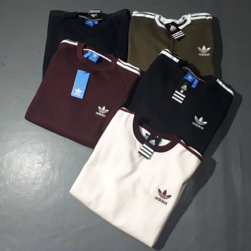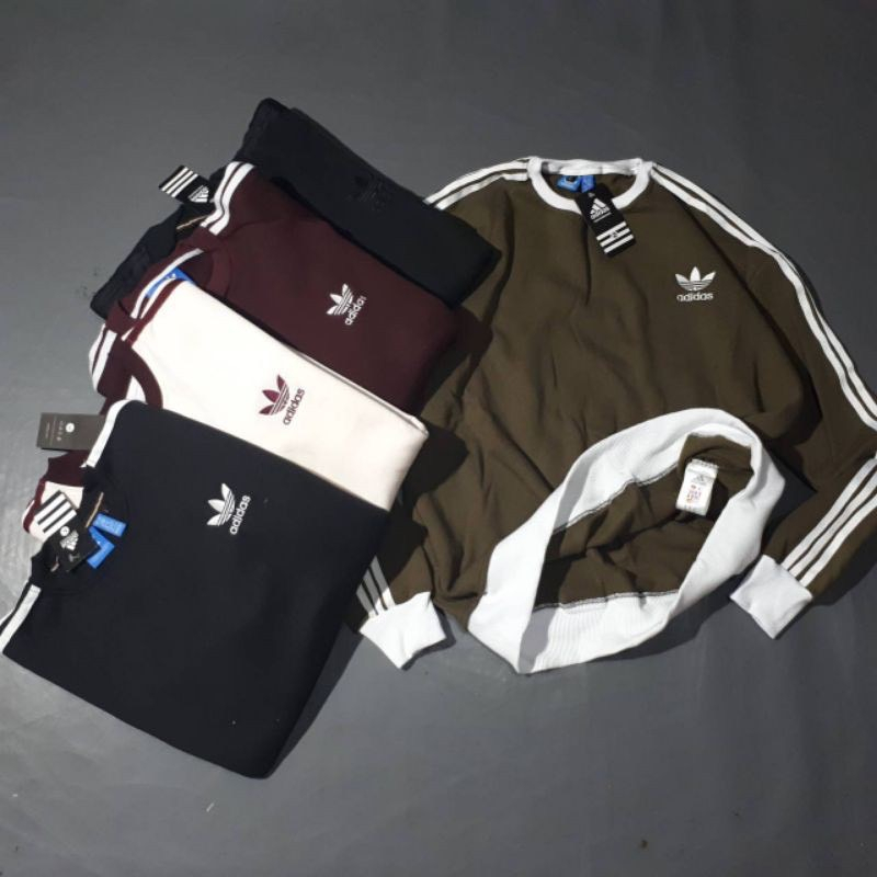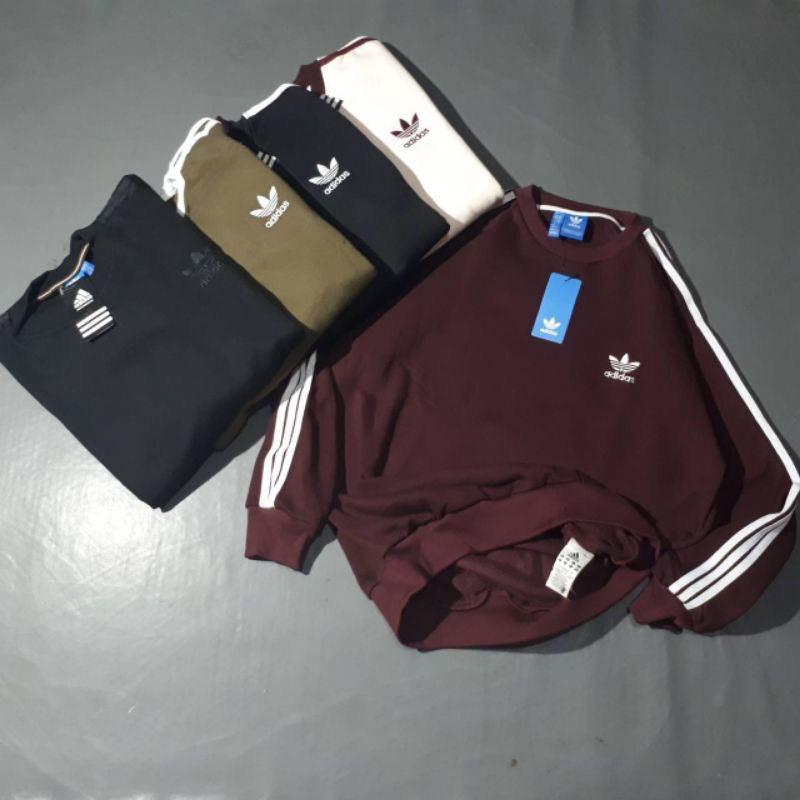 Detail Crewneck ADIDAS - Slide Puti Line maroon Fulltag + Label Mirror Pria wanita