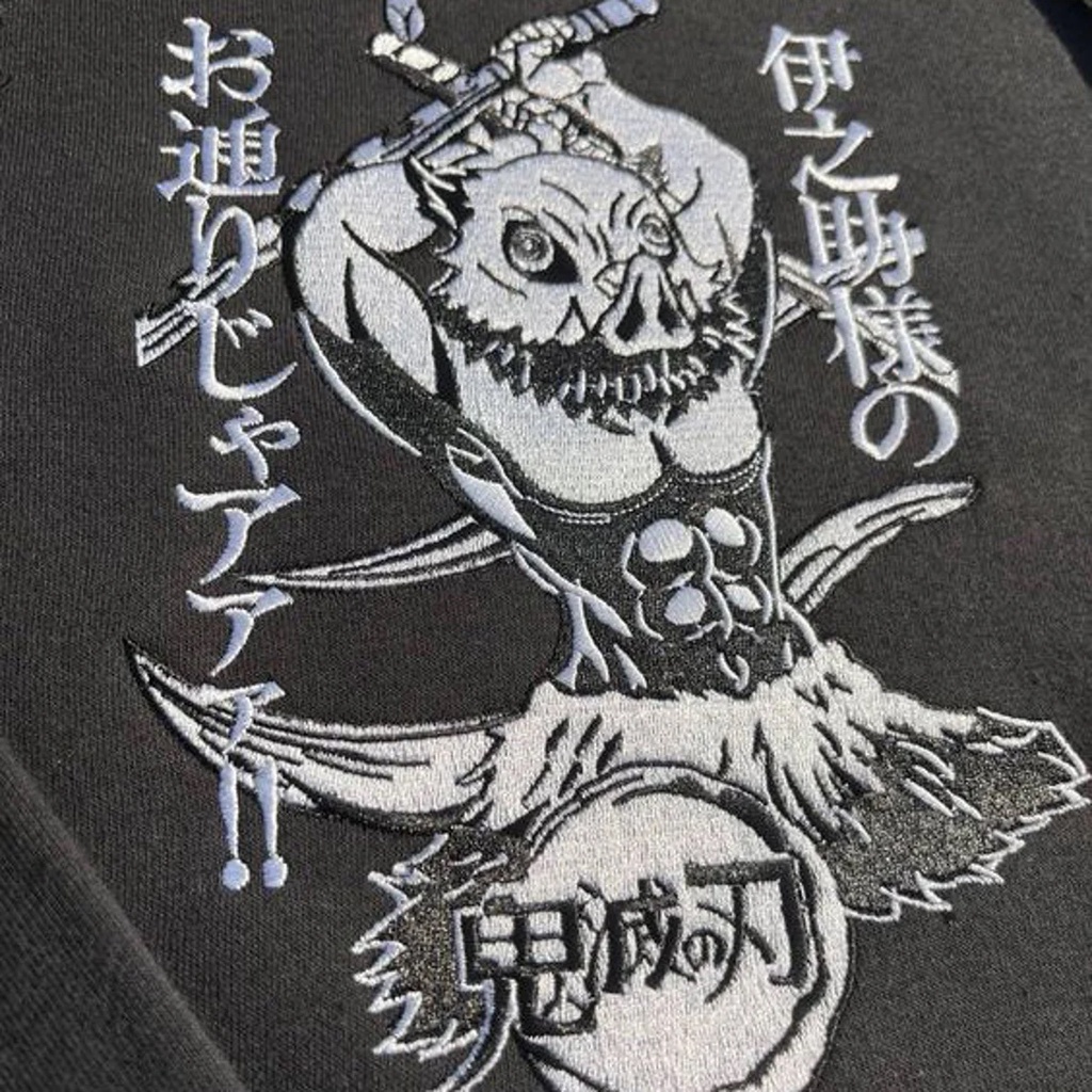 Detail Crewneck Inosuke Silluet Embroidery Anime Manga Kimetsu No Yaiba Demon Slayer Premium Unisex
