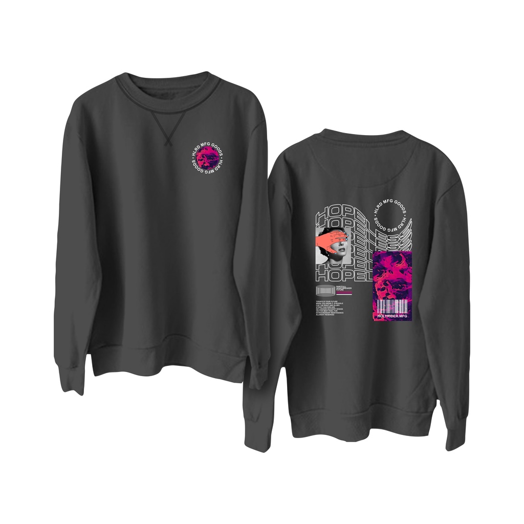 Detail Crewneck sweatshirt sablon DTF || Holyrider Sweter Basic Hoppeless size M - XXL ( Pria & Wanita )
