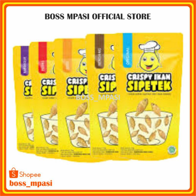 Keunggulan Crispy Ikan Sipetek: * Sertifikasi Halal LPPOM MUI No. 01031204270518 * Sertifikasi Izin P.IRT No. 2023203011034-19 * Praktis tinggal makan * Ukuran Mungil bisa dimakan dengan tulangnya * Tinggi Protein * Tinggi Kalsium * Tanpa pengawet * Non MSG * Sertifikasi Penyuluhan Kesehatan * Uji Kandungan Laboratorium Gizi * Kandungan bahan dan Pemilik 100% Lokal