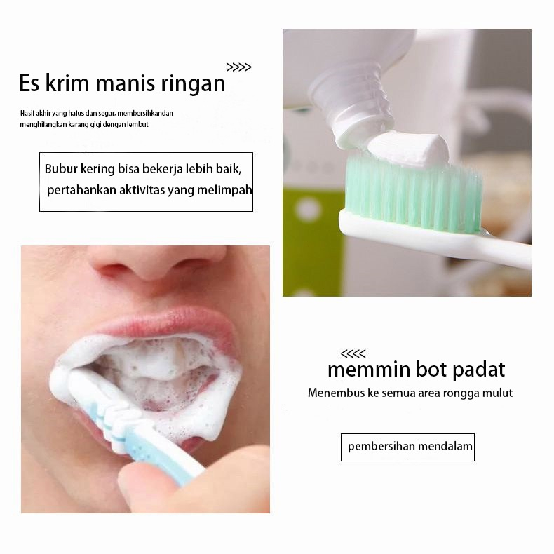 Tidak seperti bahan abrasif dan bahan kimia berbahaya yang ditemukan pada pasta gigi biasa, melalui reaksi kimia pelarutan soda kue, pasta gigi bebas fluoride ini dapat menembus ke dalam celah-celah email gigi, menghilangkan partikel makanan, plak bakteri, dan noda yang melekat di dalamnya.