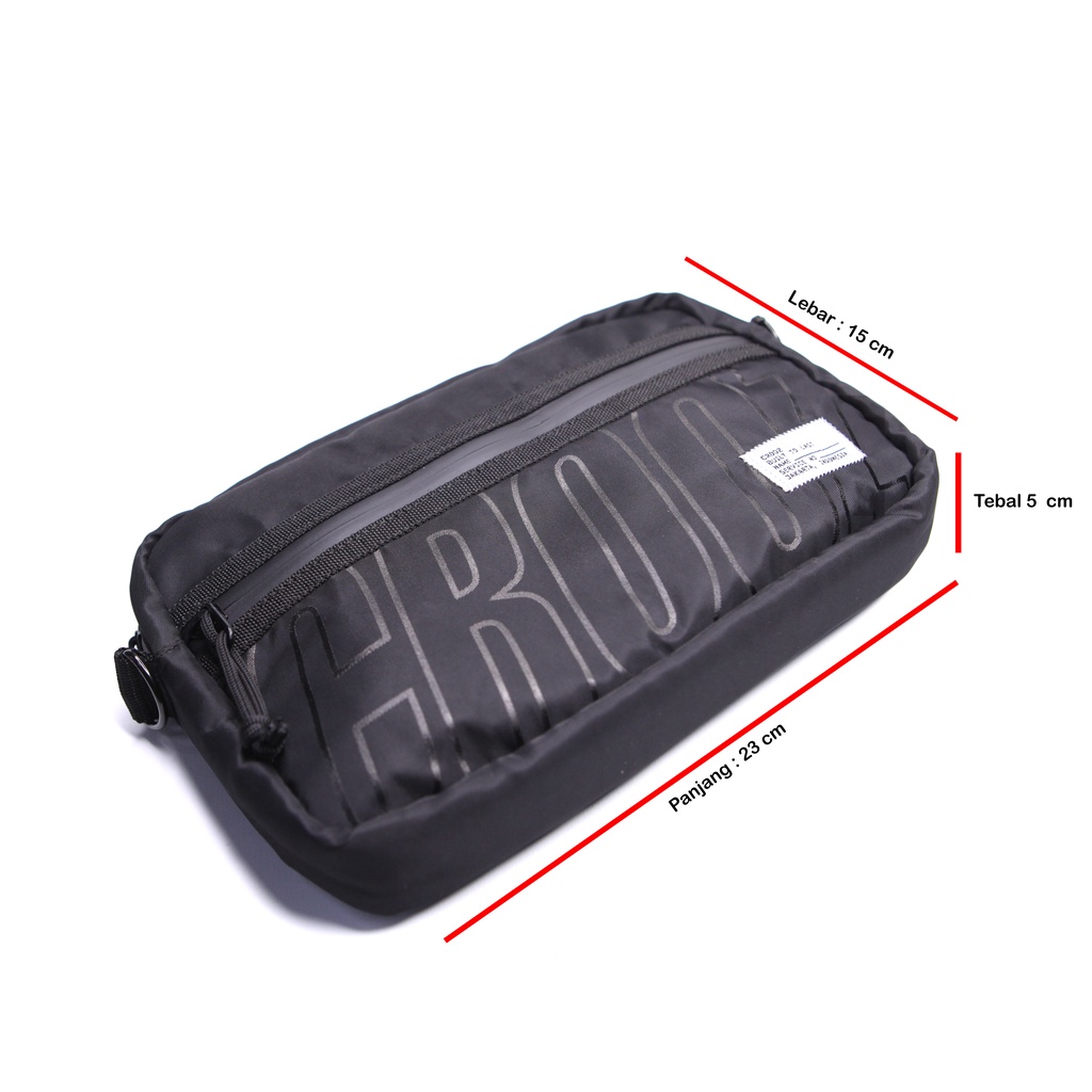 Melekat woven Crooz identity dengan jahitan zig-zag menjdikan tas terlihat elegan, Pengait tali dan ring D menggunan bahan metal.