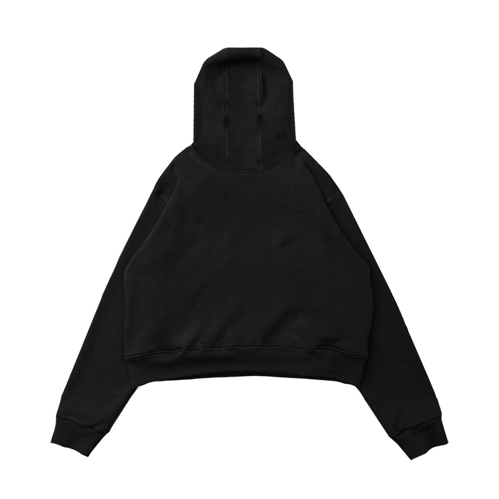 Detail CROP HOODIE OVERSIZE UNFINISHED | OLI | BLACK | YIKESALLDAY